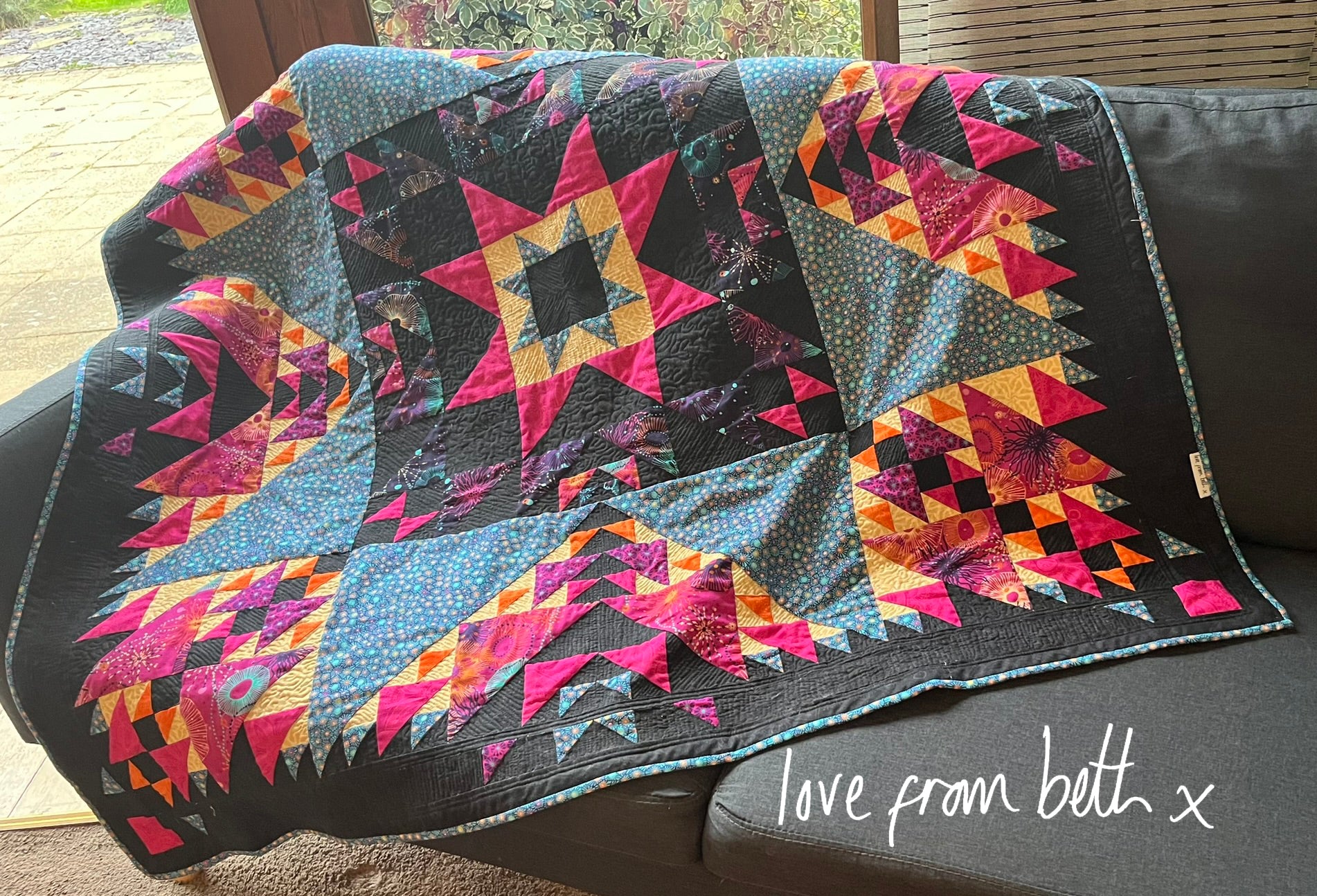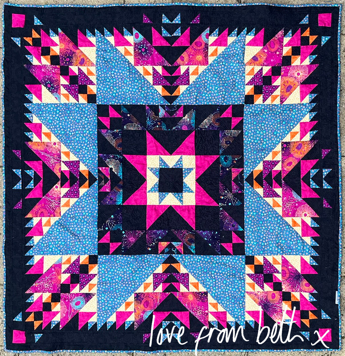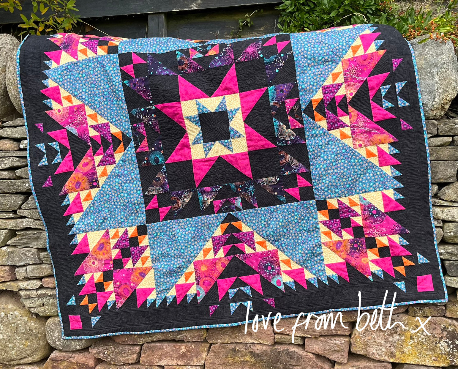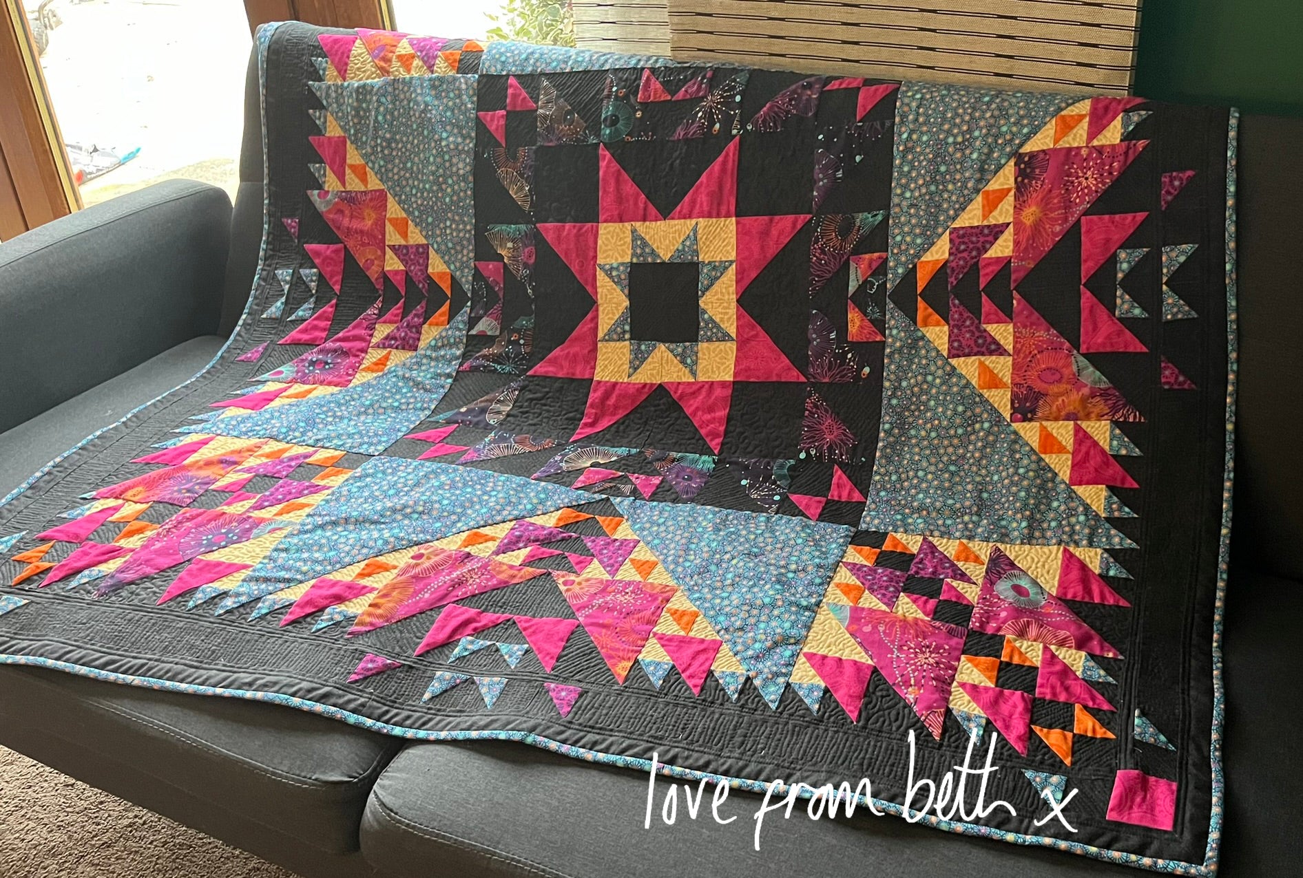 The Nova Quilt is designed to take on many different looks depending on the colour combination chosen. It follows a simple formula of just 3 different blocks and 8 different fabrics. The whole quilt is made up of simple squares and half square triangles (HST) and is therefore suitable for any skill level to tackle.