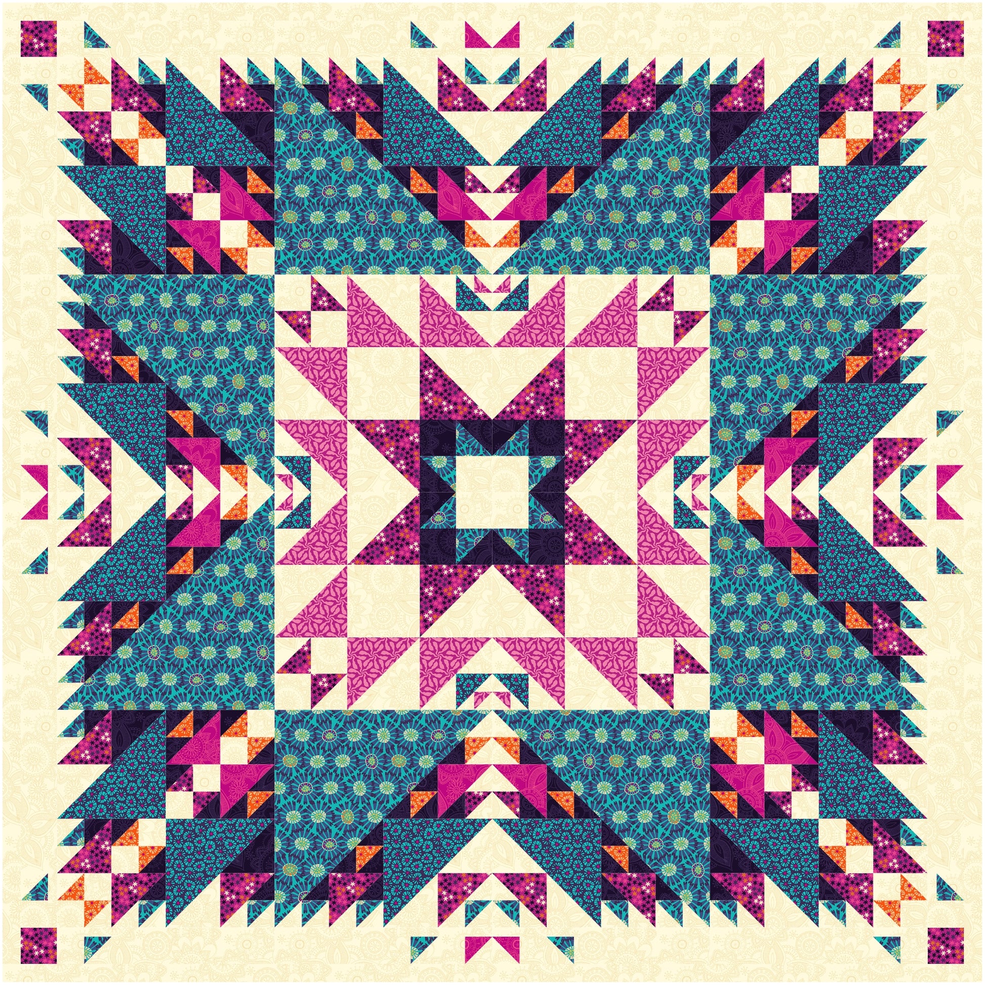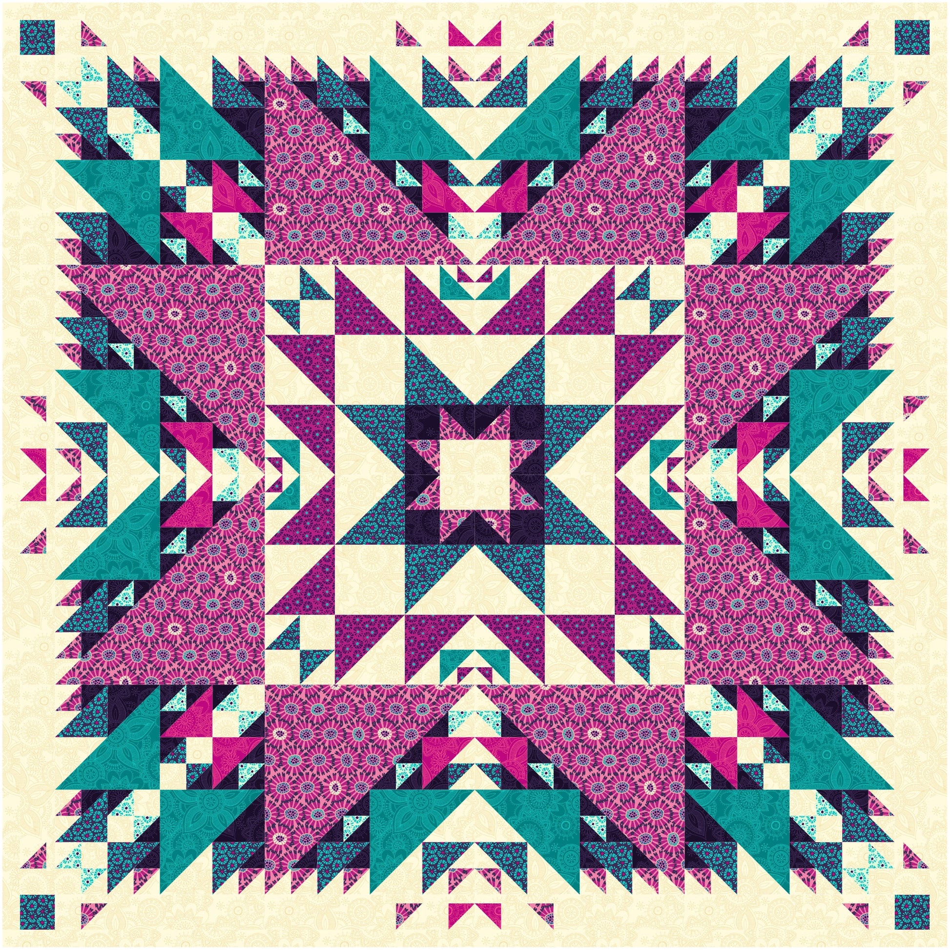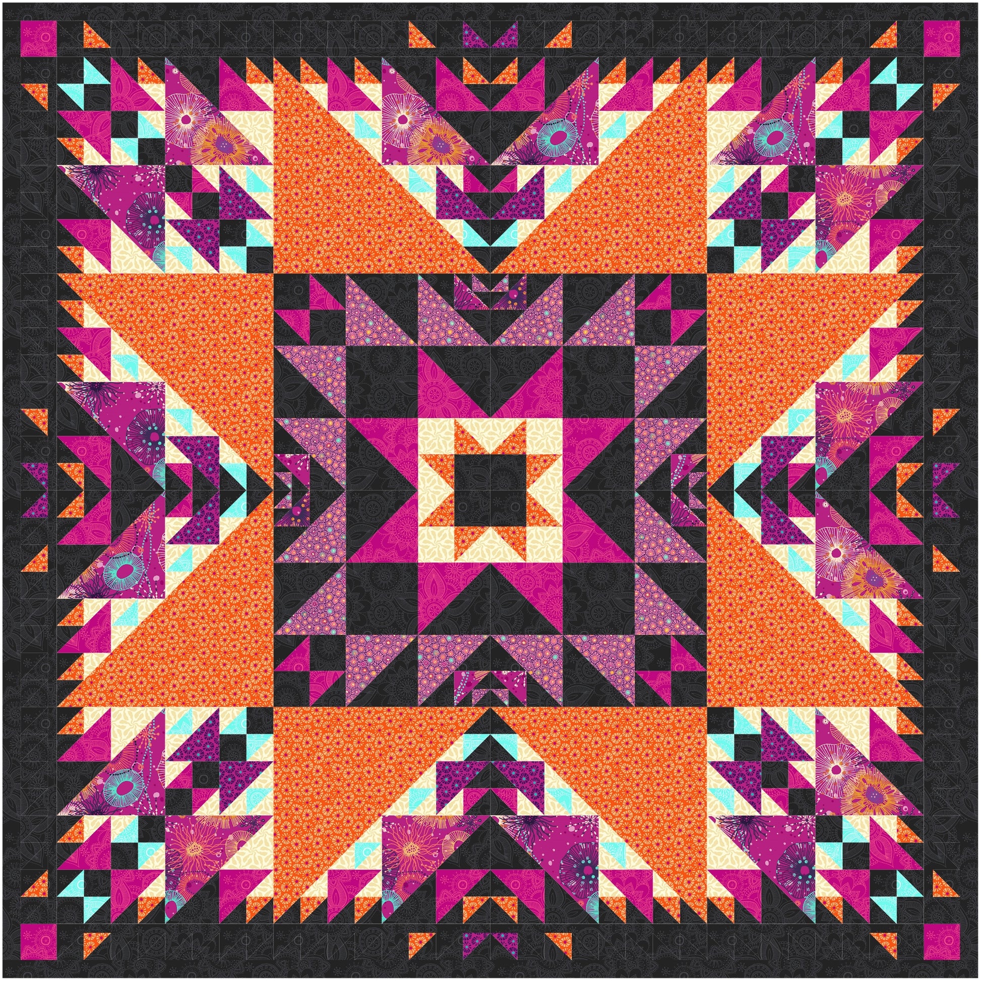 The Nova Quilt is designed to take on many different looks depending on the colour combination chosen. It follows a simple formula of just 3 different blocks and 8 different fabrics. The whole quilt is made up of simple squares and half square triangles (HST) and is therefore suitable for any skill level to tackle.