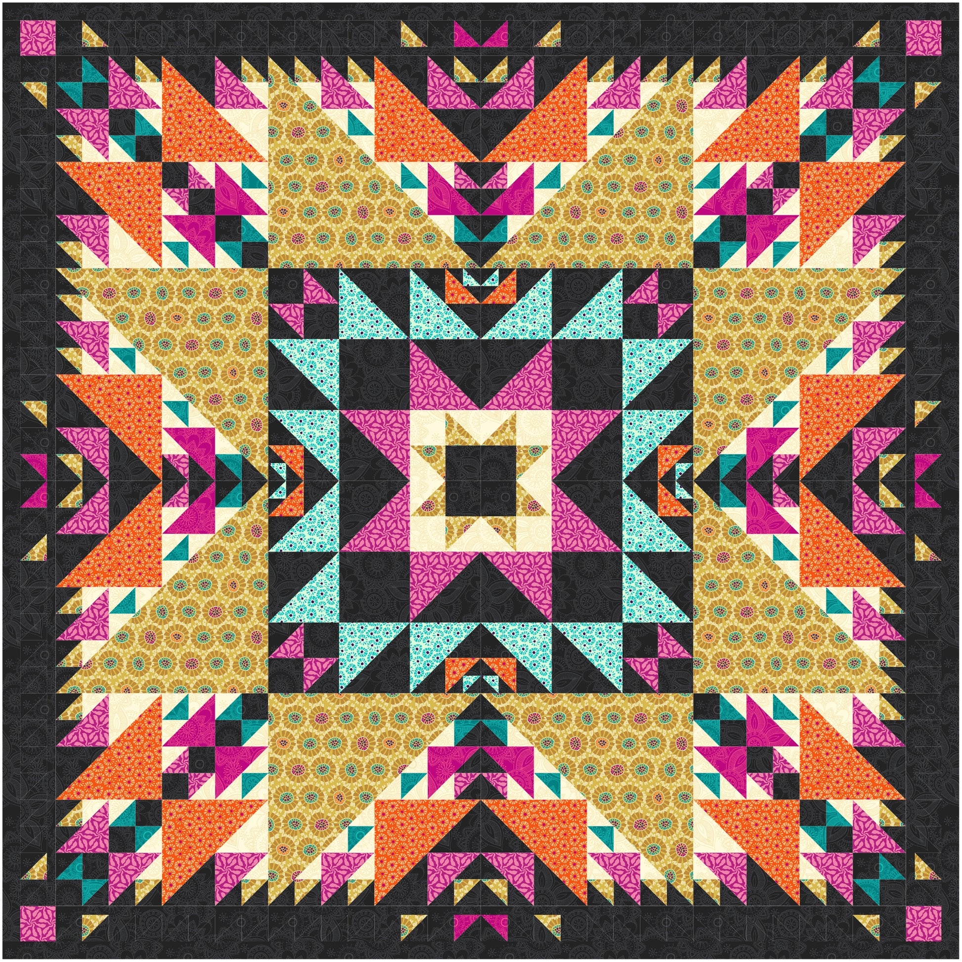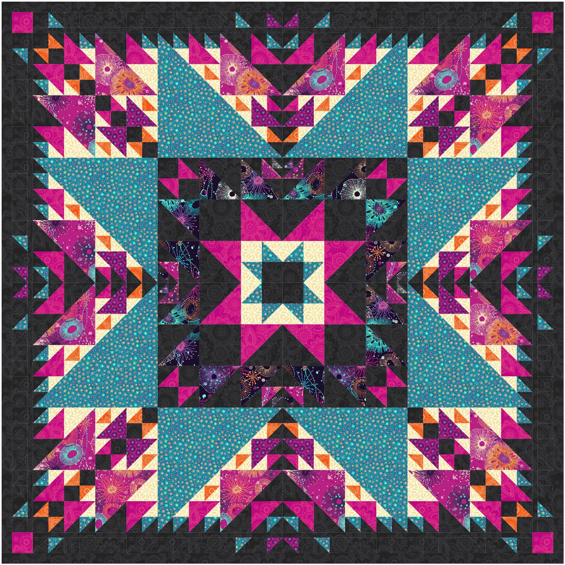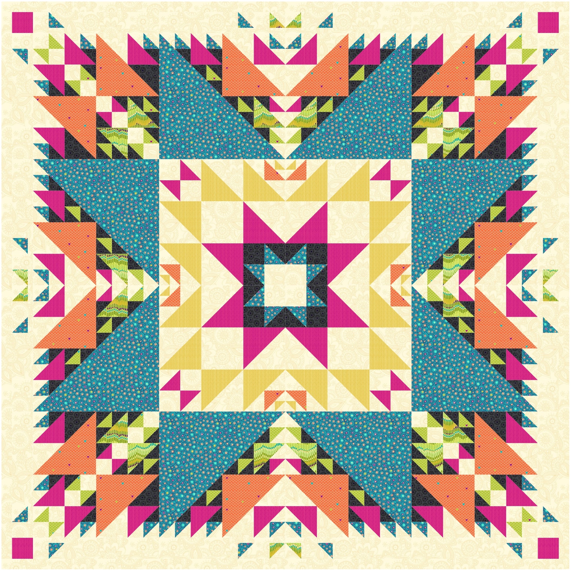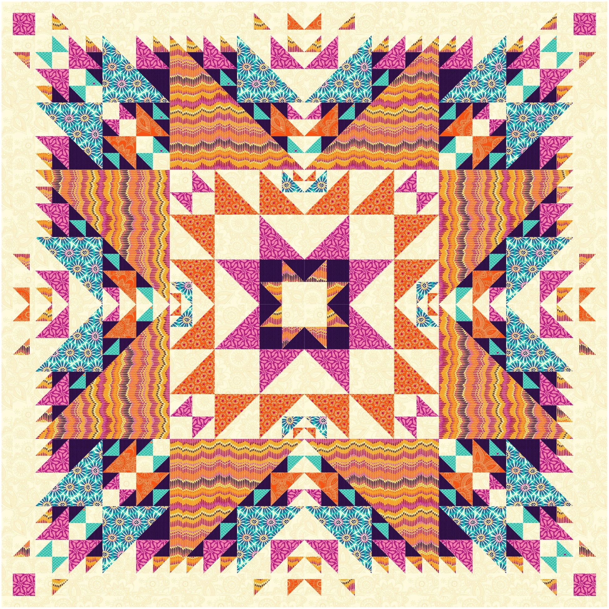 The Nova Quilt is designed to take on many different looks depending on the colour combination chosen. It follows a simple formula of just 3 different blocks and 8 different fabrics. The whole quilt is made up of simple squares and half square triangles (HST) and is therefore suitable for any skill level to tackle.