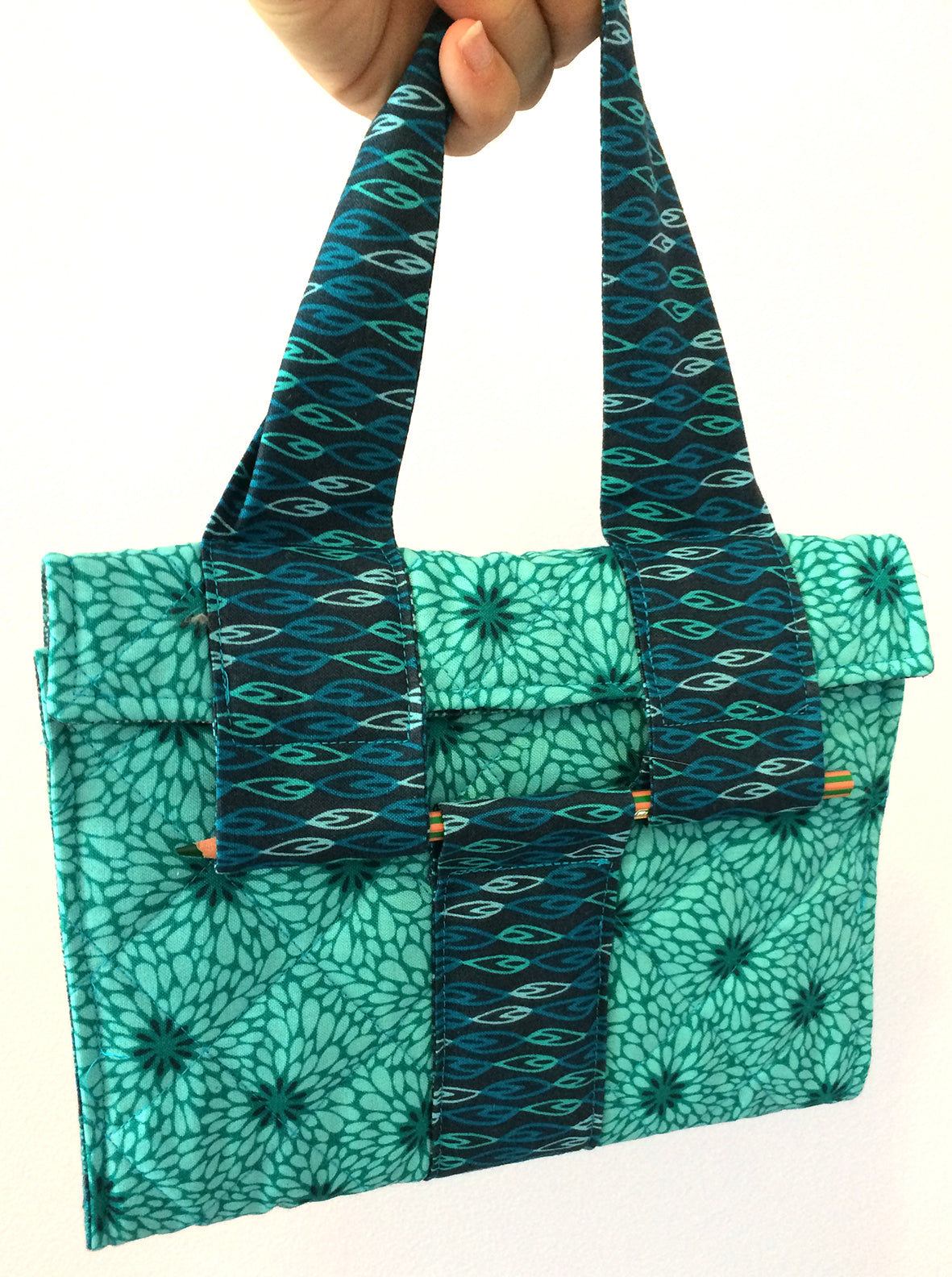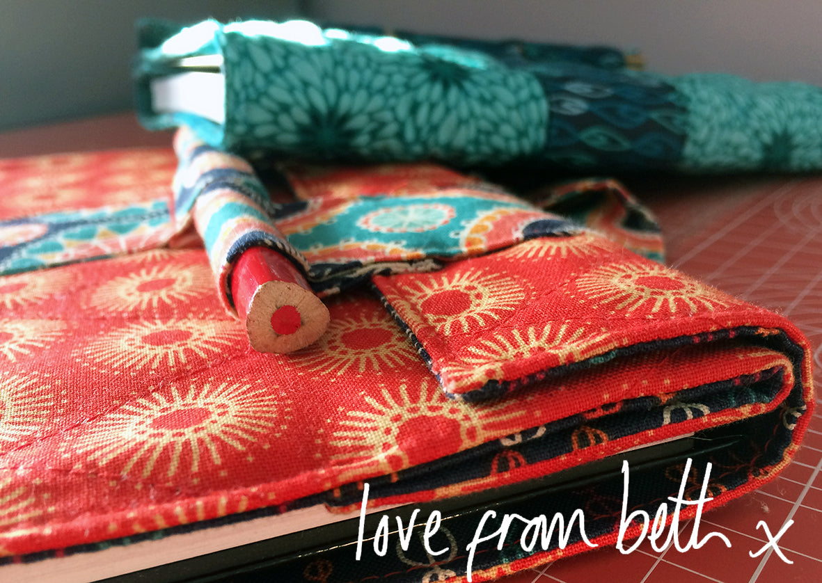Part of my new ‘minis’ range of pocket sized patterns, this clever little notebook has a built in pen holder and carry handle. Its also really pretty and very easy to make. Great beginner project and great to make for gifts.