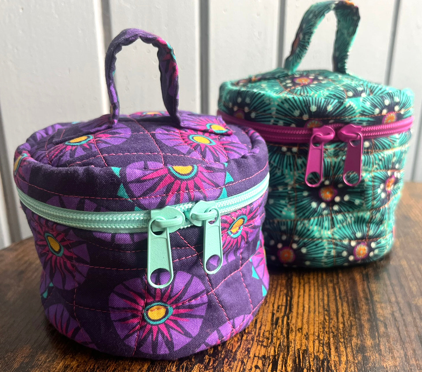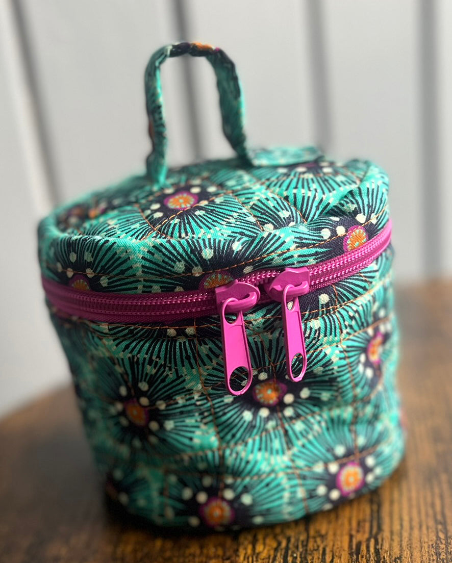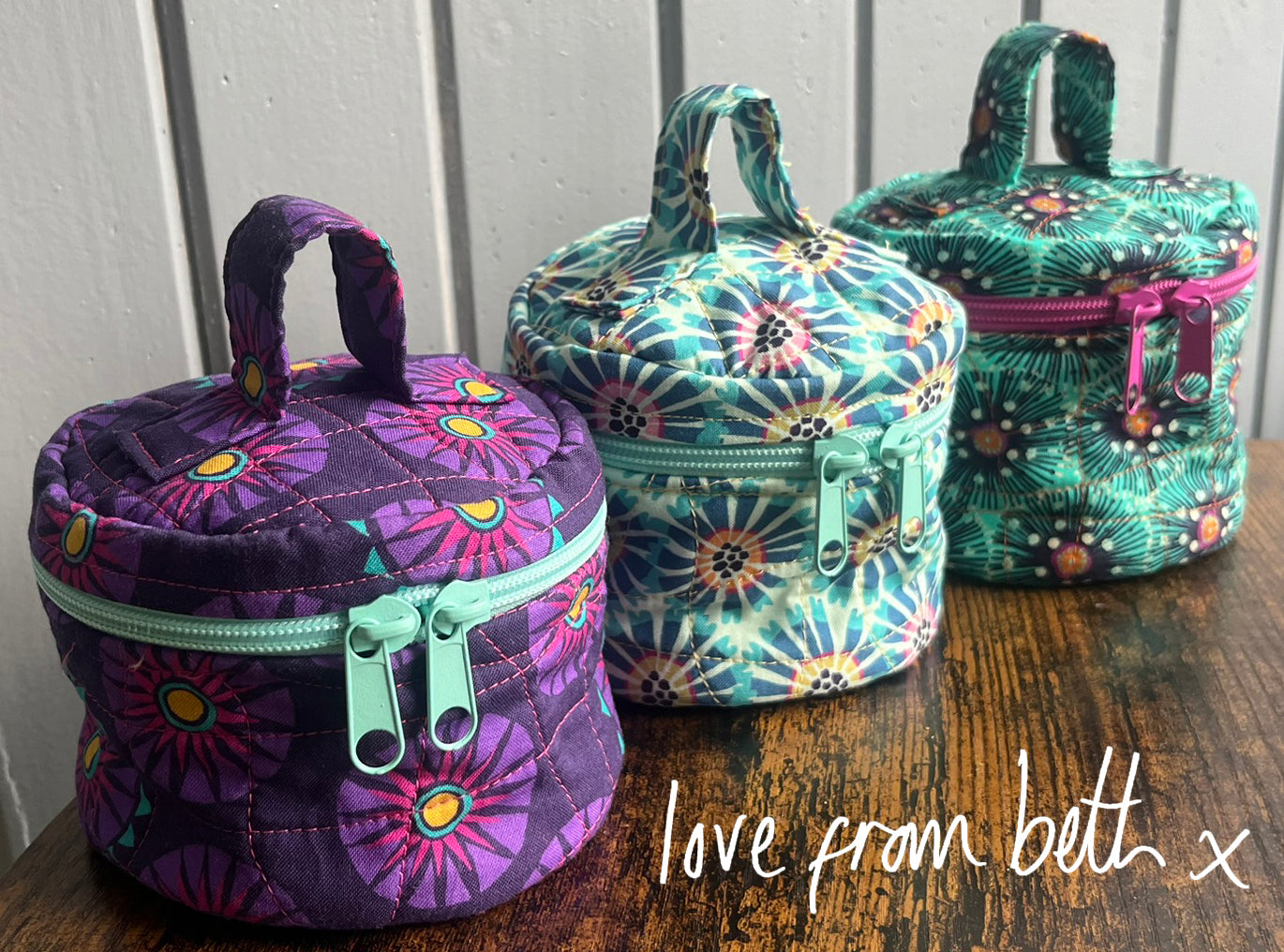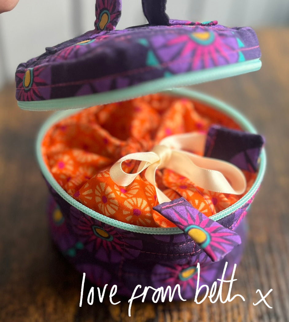 This funky little purse has an all round zip which opens up to a drawstring closure on the inside. perfect for make up, jewelery or as a very special gift bag