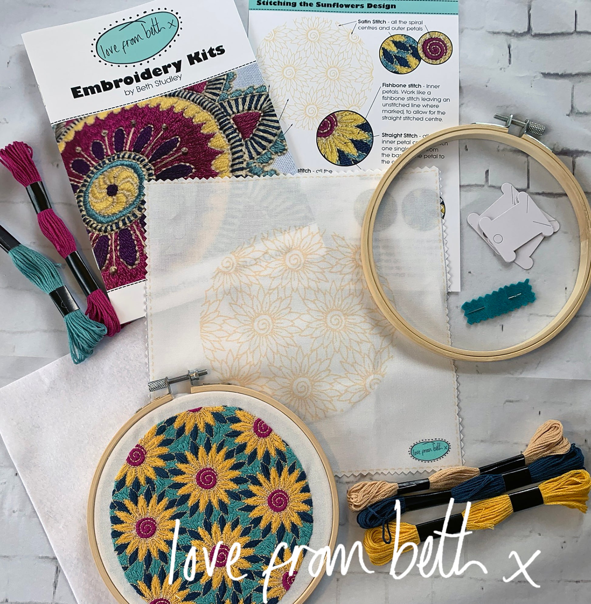 The designs are taken from the original hand drawn artwork used to create my 'Henna' fabric collections. This 'Sunflowers' kit and the colours used are taken from one of the colourways in my new henna collection launching in Sept 21.