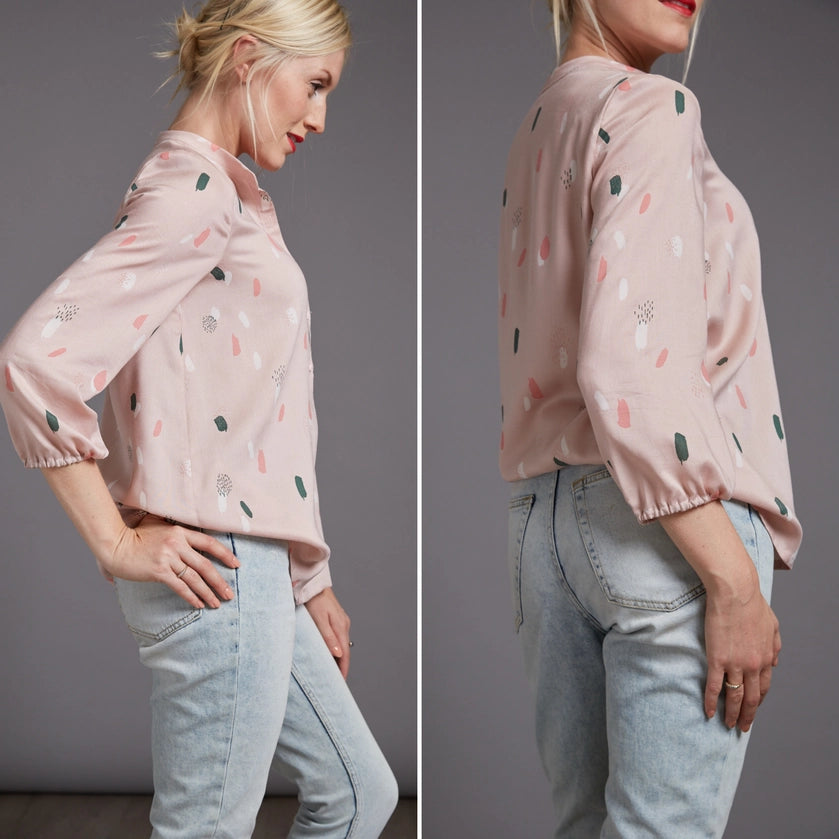 The Blouse sewing pattern includes everything the home sewist needs to sew themselves a versatile blouse. The pattern is presented in a large resealable envelope with high-quality photography of the garment being made. The back of the envelope provides the garment information such as the description, sizing, skill level, fabric & haberdashery required and a technical drawing so that customers can see the detail of the garment.